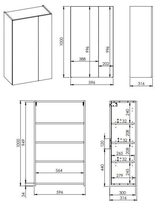 Arezzo design univerzális felsőszekrény 60x100 cm, magasfényű fehér AR-165569