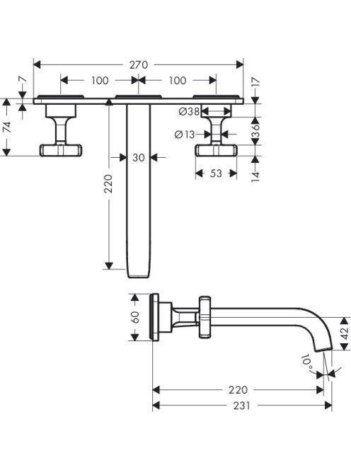 Axor Citterio E 3-lyukú fali mosdócsaptelep 36115000