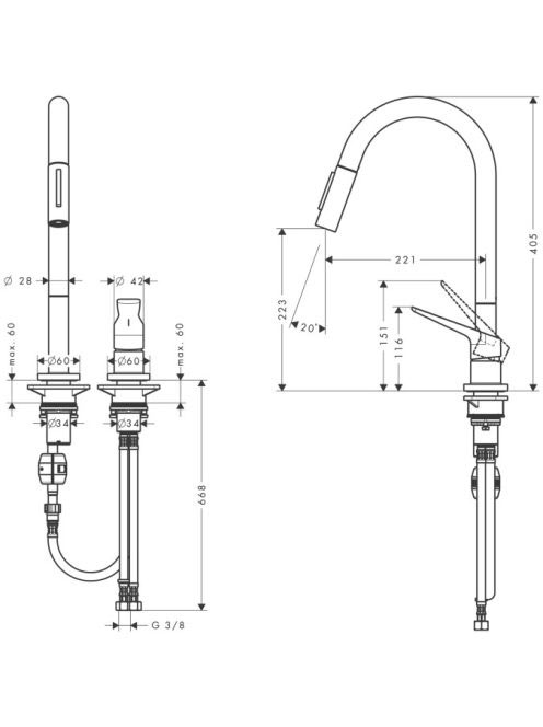 Axor Citterio M 2-lyukú mosogató csaptelep 34822800