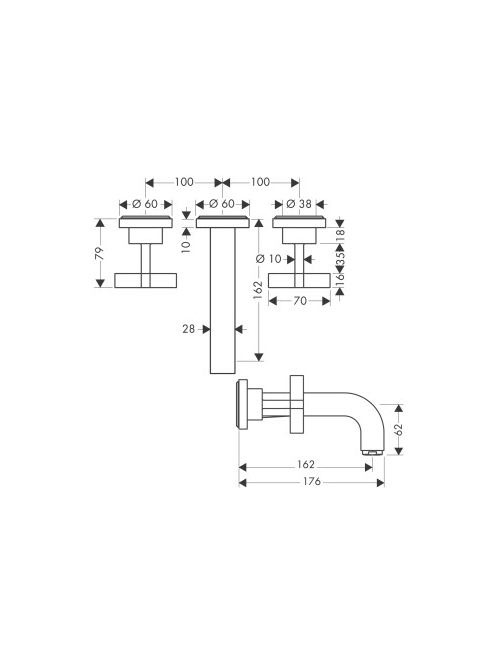Axor Citterio 3-lyukú mosdócsaptelep falsík alatti szereléshez, 162 mm-es kifolyóval, keresztfogantyúkkal 39313000