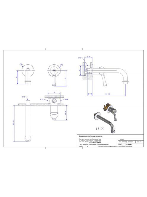Bugnatese Denver 2-lyukas fali mosdócsaptelep leeresztő nélkül, 22 cm-es kifolyóval, szálcsiszolt nikkel 6451NSBugnatese Denver 2-lyukas fali mosdócsaptelep leeresztő nélkül, 22 cm-es kifolyóval, szálcsiszolt nikkel 6451NS
