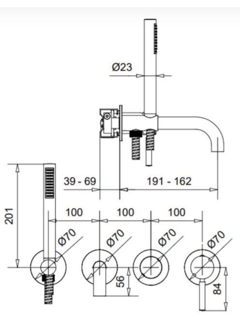 Bugnatese Kobuk falsík alatti kádcsaptelep zuhanyszettel, matt fekete 2201NEBugnatese Kobuk falsík alatti kádcsaptelep zuhanyszettel, matt fekete 2201NE