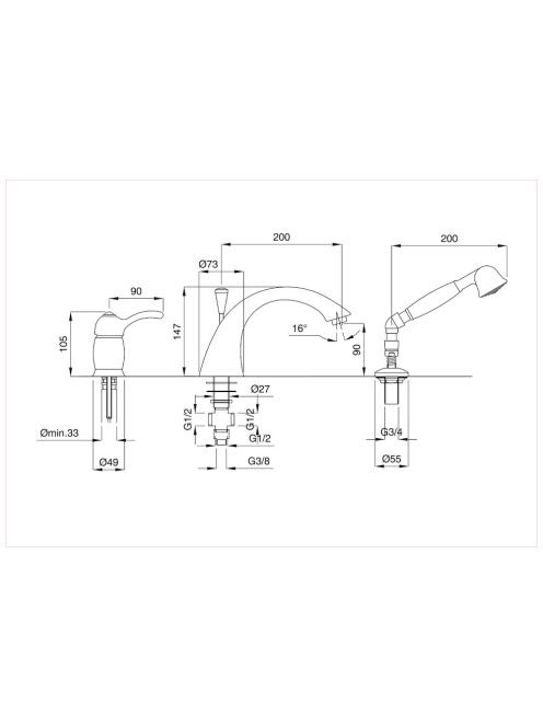 Bugnatese Lem Peremre szerelt 3 üléses kádcsaptelep matt bronz színben 1950BOBugnatese Lem Peremre szerelt 3 üléses kádcsaptelep matt bronz színben 1950BO