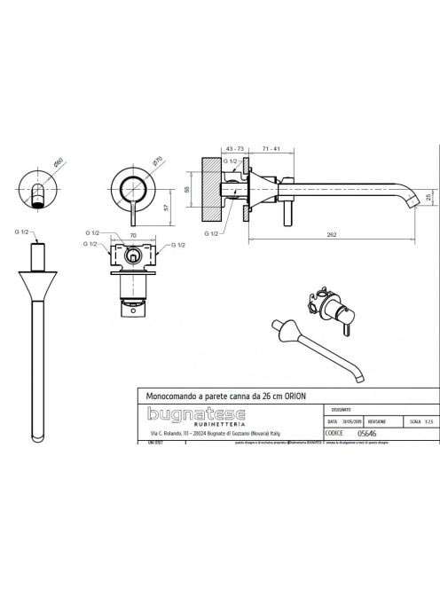 Bugnatese Orion fali mosdócsaptelep 26 cm-es kifolyóval, króm 5646CR