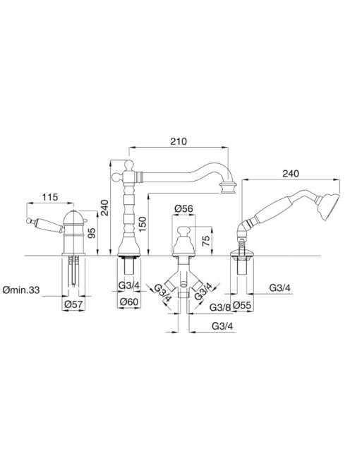 Bugnatese Oxford 4-lyukú kádperemre szerelhető termosztátos kádcsaptelep, arany 6358DOBugnatese Oxford 4-lyukú kádperemre szerelhető termosztátos kádcsaptelep, arany 6358DO