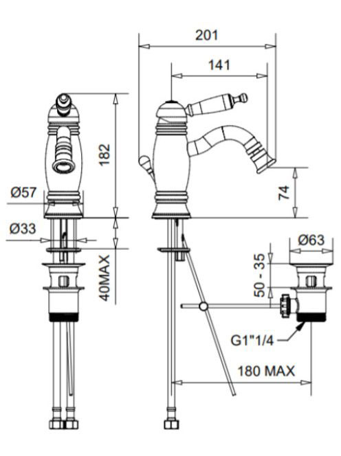 Bugnatese Oxford bidé csaptelep leeresztővel, króm 6325CRBugnatese Oxford bidé csaptelep leeresztővel, króm 6325CR