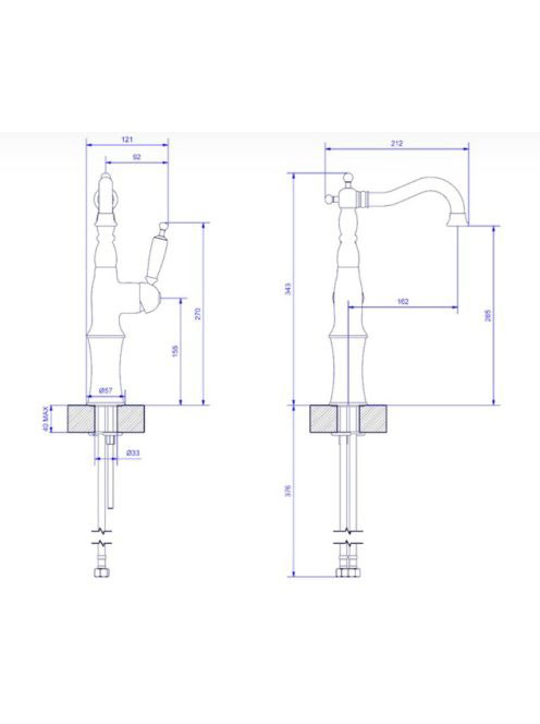 Bugnatese Oxford magasított mosdócsaptelep Click-Clack leeresztővel, rame 6317SCRA