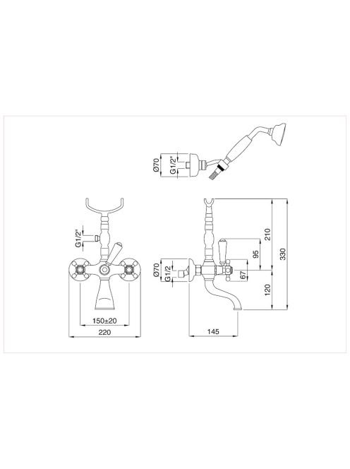 Bugnatese Revival kádcsaptelep zuhanyszettel, arany 402DOBugnatese Revival kádcsaptelep zuhanyszettel, arany 402DO