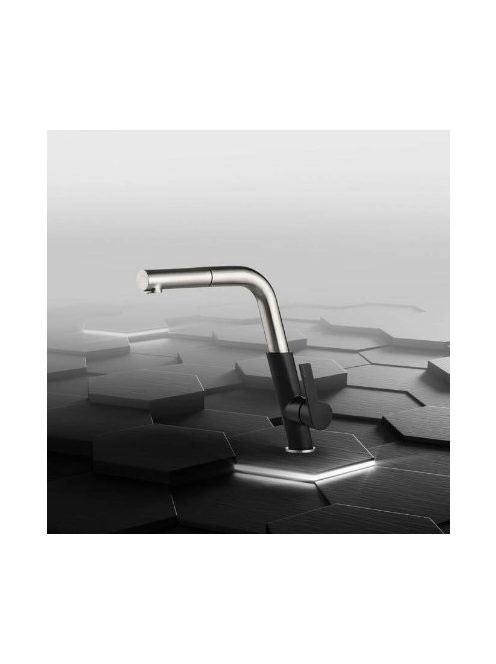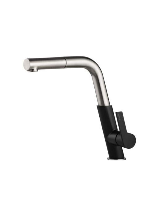 Deante Silia egykaros konyhai csaptelep kihúzható kifolyóval, fekete/acél BQS B730Deante Silia egykaros konyhai csaptelep kihúzható kifolyóval, fekete/acél BQS B730