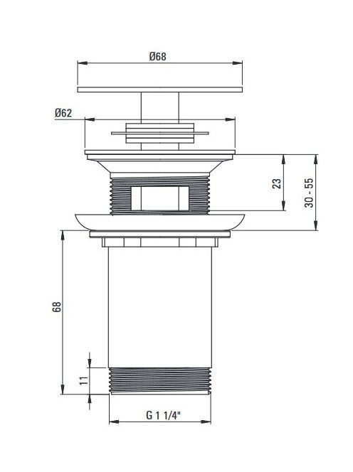 Deante Click-Clack kerek leeresztő szelep túlfolyó és túlfolyó nélküli mosdókhoz, sárgaréz NHC_M10UDeante Click-Clack kerek leeresztő szelep túlfolyó és túlfolyó nélküli mosdókhoz, sárgaréz NHC_M10U
