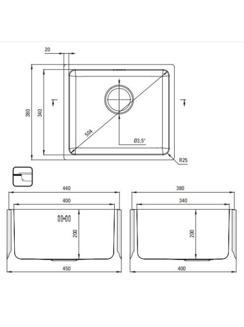 Deante Egeria 1 medencés rozsdamentes acél mosogató csepegtető nélkül 44x38 cm, szálcsiszolt ZPE 010A