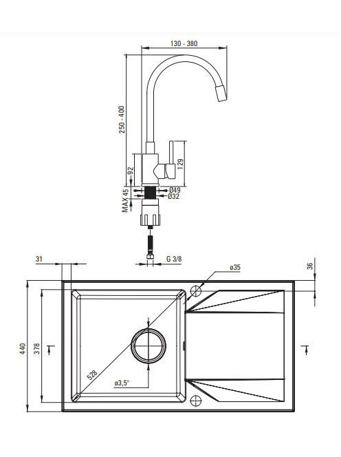 Deante Evora gránit 78x44 cm mosogató csepegtetővel és csapteleppel, matt fekete ZQJJN113