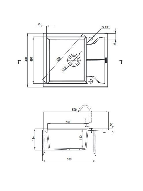 Deante Andante 1 medencés szögletes gránit mosogató csepegtetővel 59x49 cm, szürke metál ZQN S11A