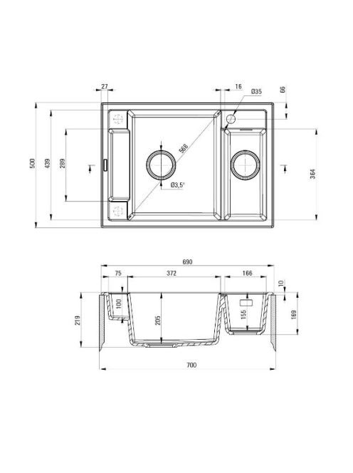 Deante Magnetic gránit mosogatótálca 69x50 cm, automatikus leeresztővel és szifonnal, alabástrom ZRM A503Deante Magnetic gránit mosogatótálca 69x50 cm, automatikus leeresztővel és szifonnal, alabástrom ZRM A503