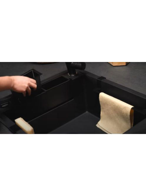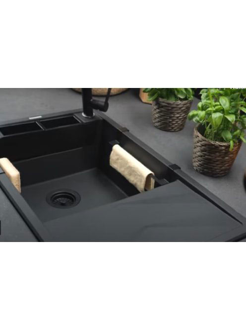 Deante Magnetic gránit mosogatótálca 82x50 cm, automatikus leeresztővel és szifonnal, matt fekete ZRM N113Deante Magnetic gránit mosogatótálca 82x50 cm, automatikus leeresztővel és szifonnal, matt fekete ZRM N113