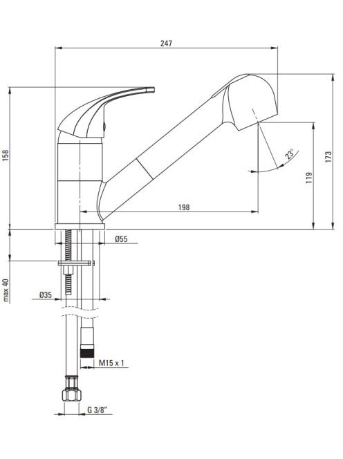 Deante Pepe konyhai csap, kihúzható kifolyóval, króm/grafit BDP_271MDeante Pepe konyhai csap, kihúzható kifolyóval, króm/grafit BDP_271M
