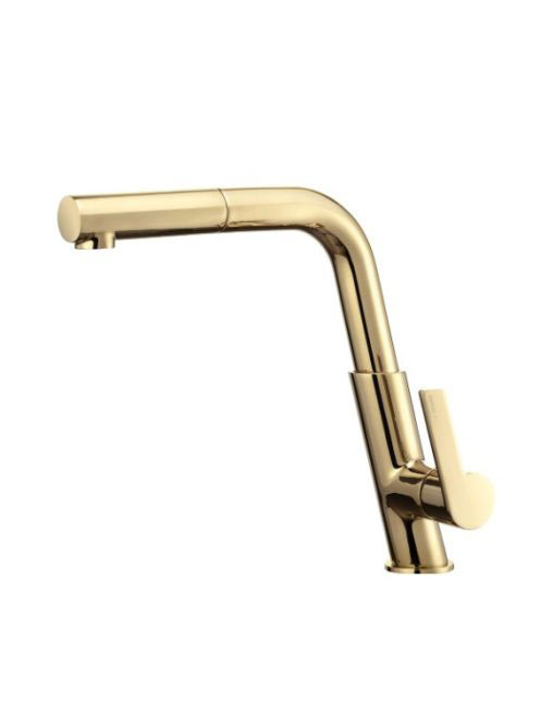 Deante Silia egykaros konyhai csaptelep kihúzható kifolyóval, arany BQS Z73M