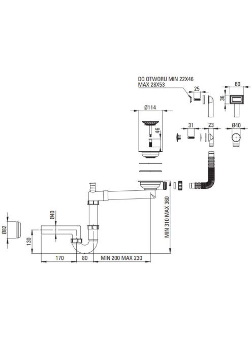 Deante Space Saver helytakarékos mosogatószifon 1 medencés mosogatóhoz, matt fekete ZXY_N949