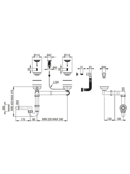 Deante Space-Saver szifon 1,5 és 2 medencés gránit mosogatókhoz, rozsdamentes acél ZXY 9973Deante Space-Saver szifon 1,5 és 2 medencés gránit mosogatókhoz, rozsdamentes acél ZXY 9973