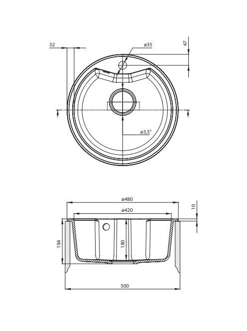 Deante Solis 1 medencés kerek gránit mosogató 48x48 cm, szürke metál ZRS S803Deante Solis 1 medencés kerek gránit mosogató 48x48 cm, szürke metál ZRS S803