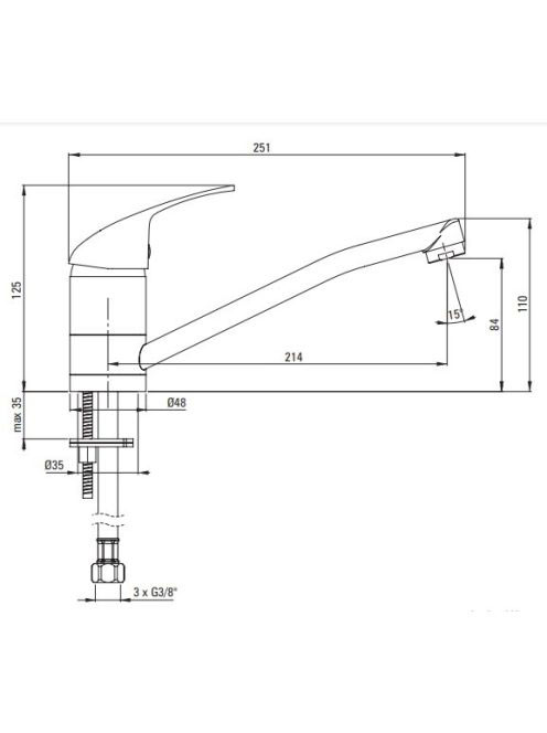 Deante egykaros konyhai csaptelep alacsony nyomású, háromutas vízmelegítőhöz, króm BEZ 060H