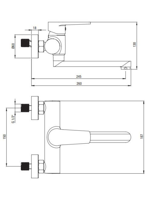 Deante Tubo falra szerelhető króm mosdócsaptelep BUT_050MDeante Tubo falra szerelhető króm mosdócsaptelep BUT_050M