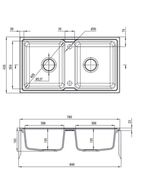 Deante Zorba 2 medencés szögletes gránit mosogató 78x43,5 cm csepegtető nélkül, alabástrom ZQZ A203Deante Zorba 2 medencés szögletes gránit mosogató 78x43,5 cm csepegtető nélkül, alabástrom ZQZ A203