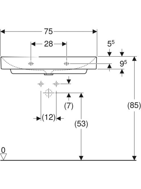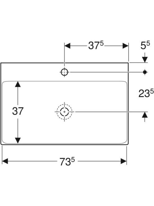 Geberit One mosdó 75x48 cm csaplyukkal, túlfolyó nélkül, KerGeberit One mosdó 75x48 cm csaplyukkal, túlfolyó nélkül, Ker