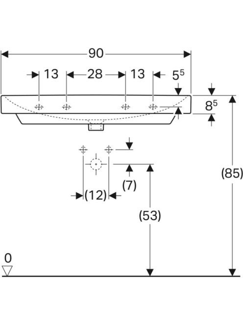 Geberit Smyle Square mosdó 90x48 cm, 2 csapfurattal és túlfolyóval 500.252.01.1