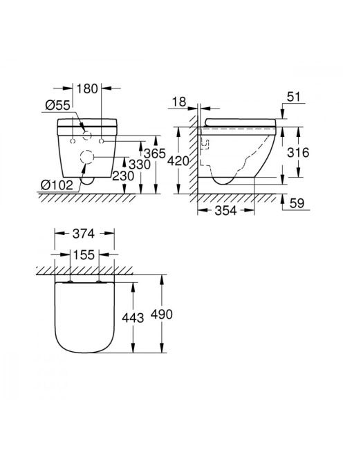 Grohe Euro Ceramic kompakt függesztett fali WC csésze, SoftCGrohe Euro Ceramic kompakt függesztett fali WC csésze, SoftC