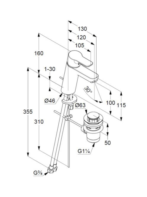 Kludi Pure&Easy króm/fehér egykaros mosdócsaptelep 100, automata lefolyógarnitúrával 372909165