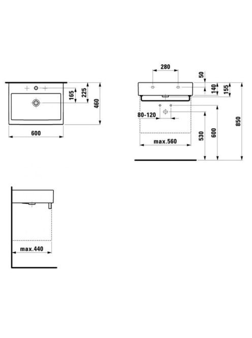 Laufen Living City kerámia mosdó csiszolt alsó felülettel 60x46 cm három csaplyukkal és túlfolyóval, fehér H8174340001081