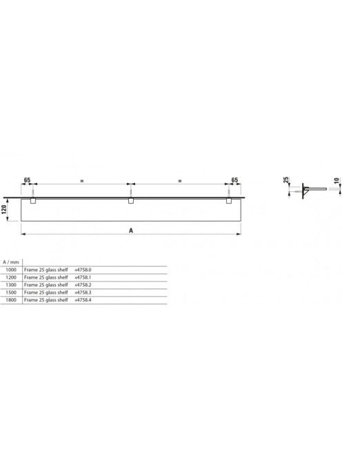 Laufen Frame 25 víztiszta üvegpolc 120x12 cm fényes alumíniuLaufen Frame 25 víztiszta üvegpolc 120x12 cm fényes alumíniu