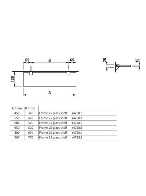 Laufen Frame 25 víztiszta üvegpolc 80x12 cm fényes alumíniumLaufen Frame 25 víztiszta üvegpolc 80x12 cm fényes alumínium
