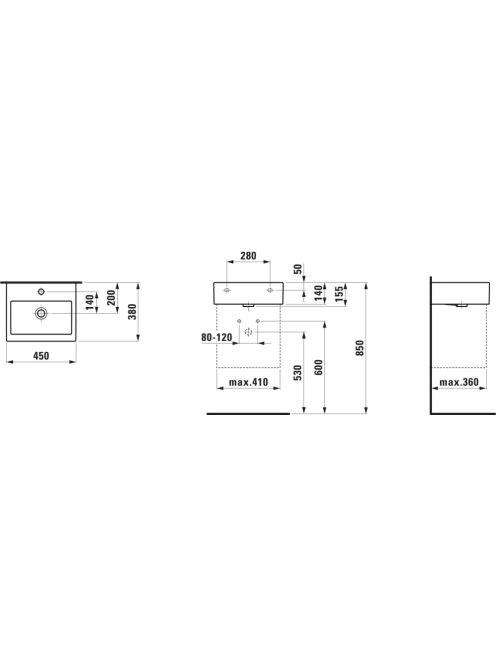 Laufen Living City kerámia kézmosó csiszolt alsó felülettel 45x38 cm csaplyuk és túlfolyó nélkül, fehér H8154330001121