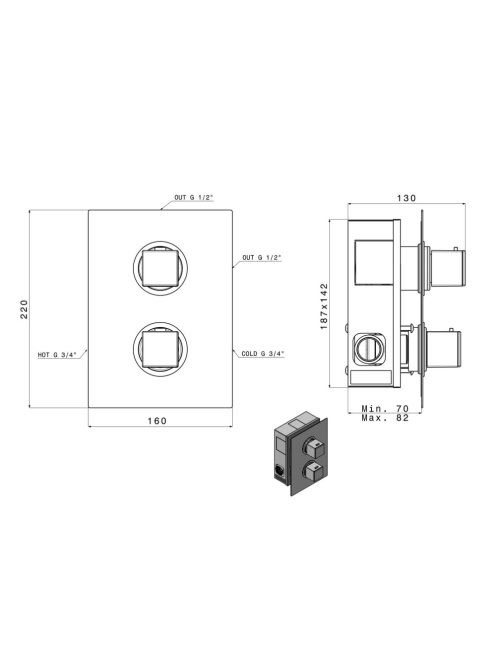 Sapho Dimy falba süllyesztett 2 irányú termosztátos zuhany cSapho Dimy falba süllyesztett 2 irányú termosztátos zuhany c
