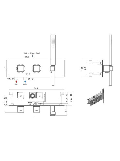 Sapho Dimy falba süllyesztett 2 irányú termosztátos zuhany cSapho Dimy falba süllyesztett 2 irányú termosztátos zuhany c