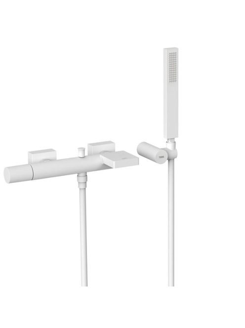 Tres Project kádtöltő csaptelep Cascade kifolyóval és zuhanyszettel, matt fehér 21117001BM